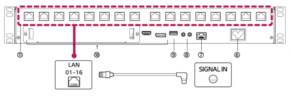 ⑩ SIGNAL-INPUT : Connect to external signal such as DP, HDMI, OPS.