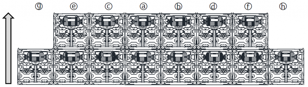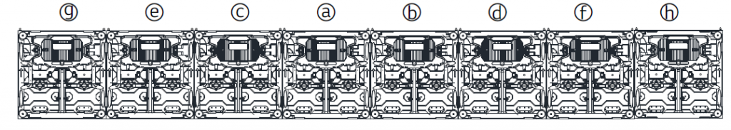 – Put 2 cabinets on the middle and tight them together with side locks then tighten them on the structure with the brackets,